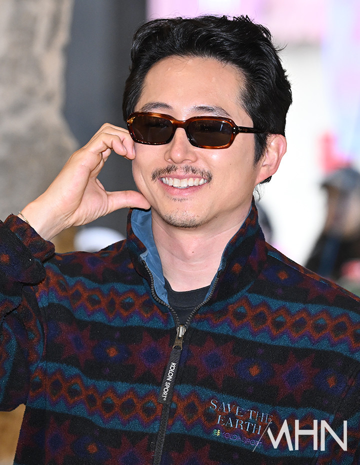 이날 배우 스티븐 연이 포토타임을 갖고 있다.