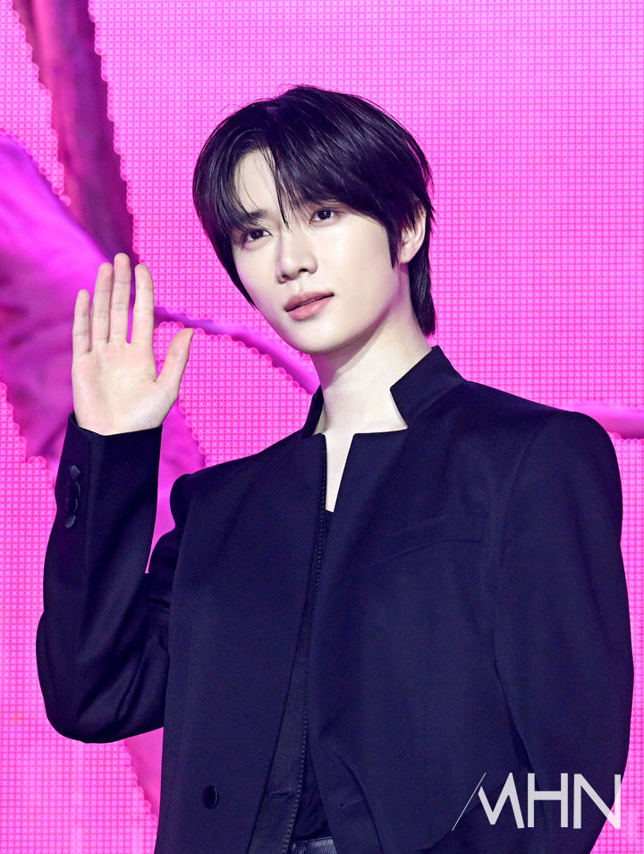 (MHN 이지숙 기자) 보이 그룹 투모로우바이투게더(TXT) 범규가 13일 오후 서울 성북구 고려대학교 화정체육관에서 열린 미니 8집 '7TH YEAR: 가시덤불에 잠시 바람이 멈췄을 때' 발매 기념 쇼케이스에서 포즈를 취하고 있다.
