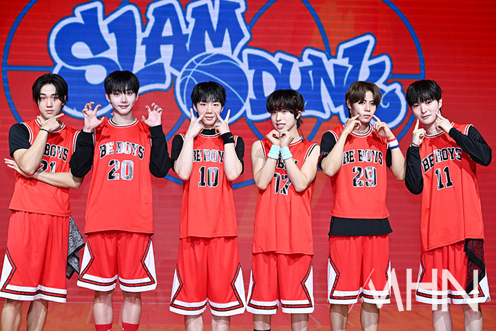 (MHN 이현지 기자) 그룹 비보이즈(BE BOYS)가 15일 오전 서울 마포구 쇼킹 K-POP 센터에서 진행된 첫 번째 싱글 'BE:2' 쇼케이스에서 포토타임을 갖고 있다.