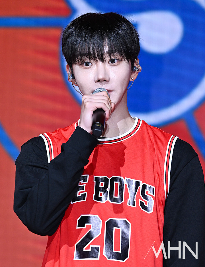 (MHN 이현지 기자) 그룹 비보이즈(BE BOYS) 구현이 15일 오전 서울 마포구 쇼킹 K-POP 센터에서 진행된 첫 번째 싱글 'BE:2' 쇼케이스에서 질문에 답하고 있다.